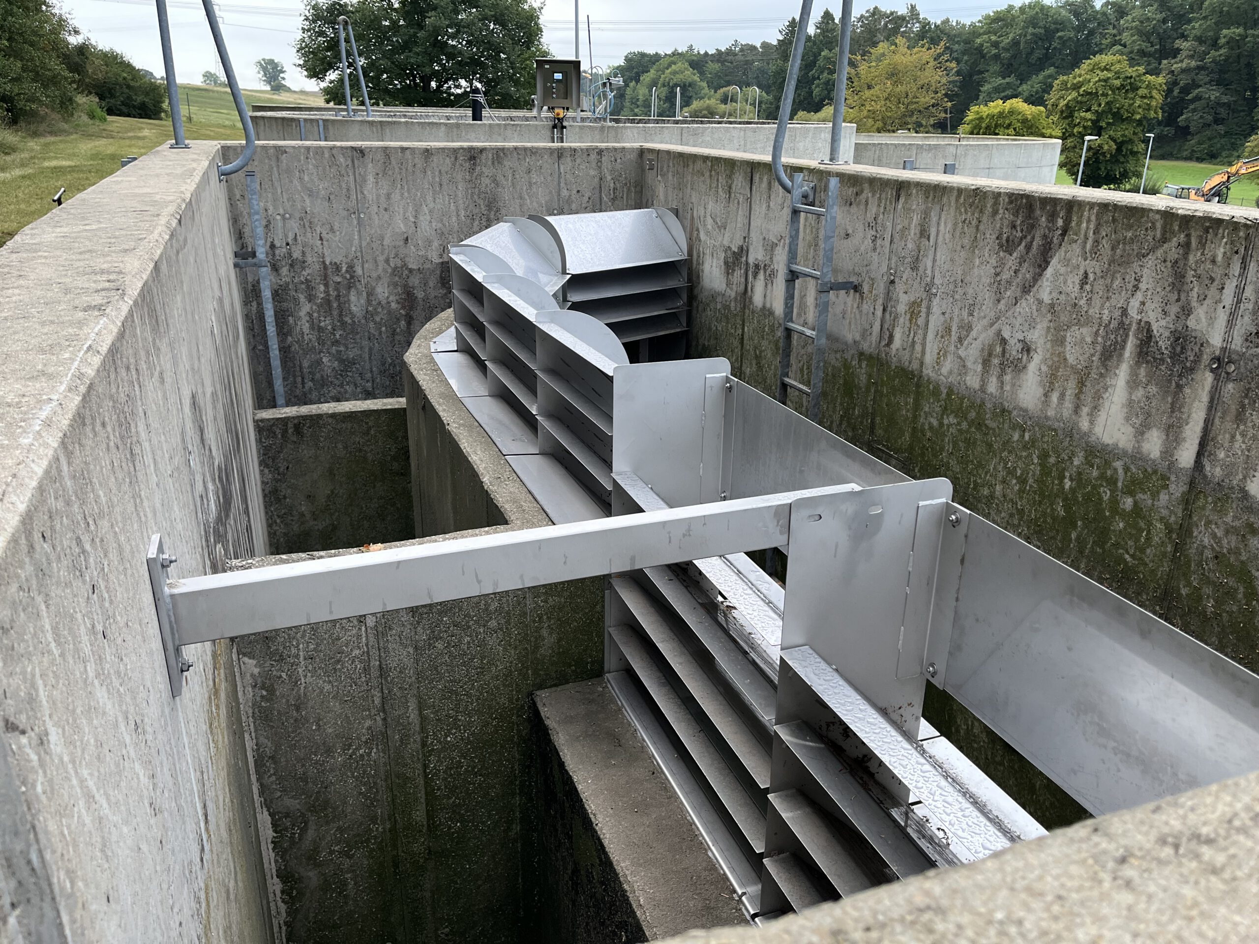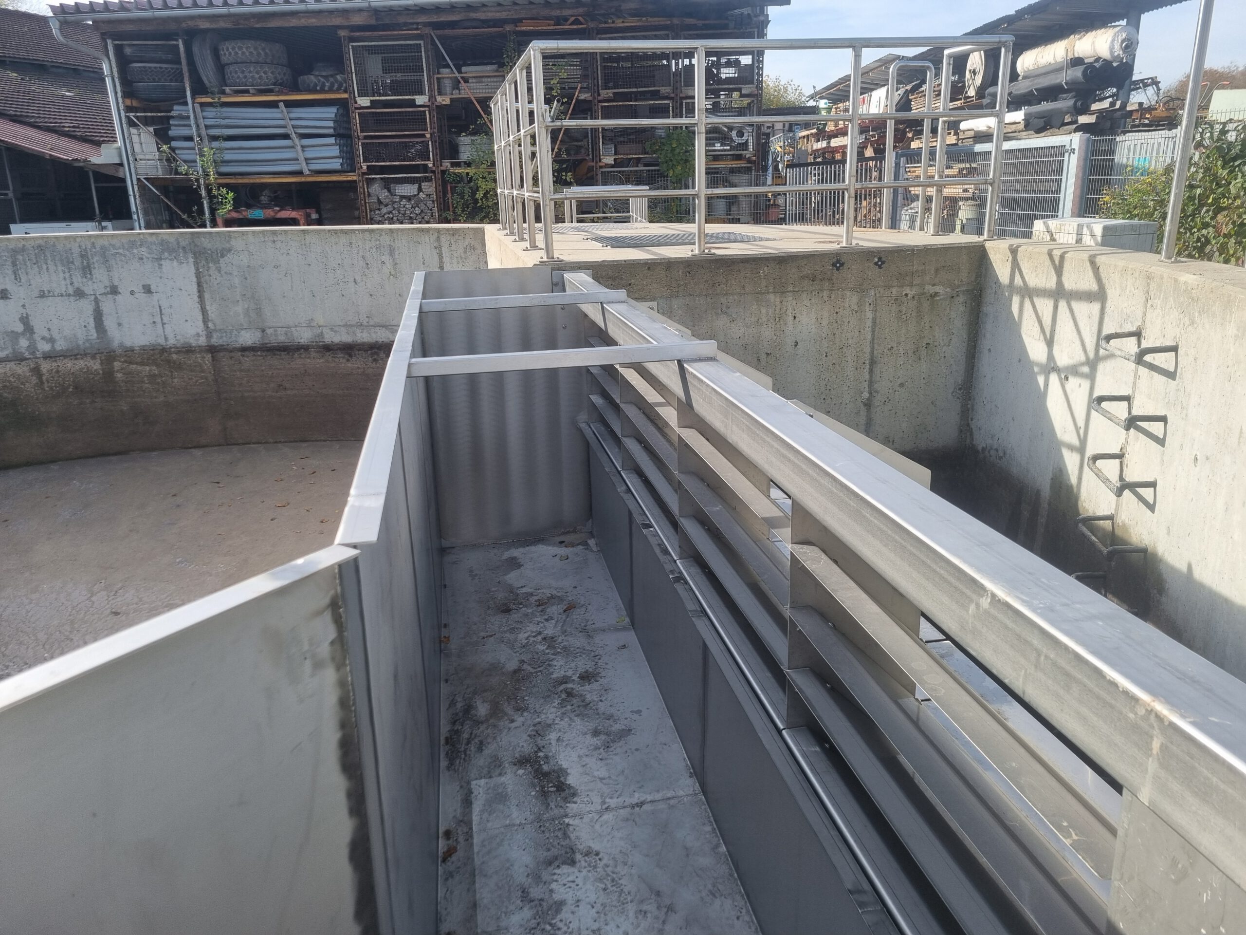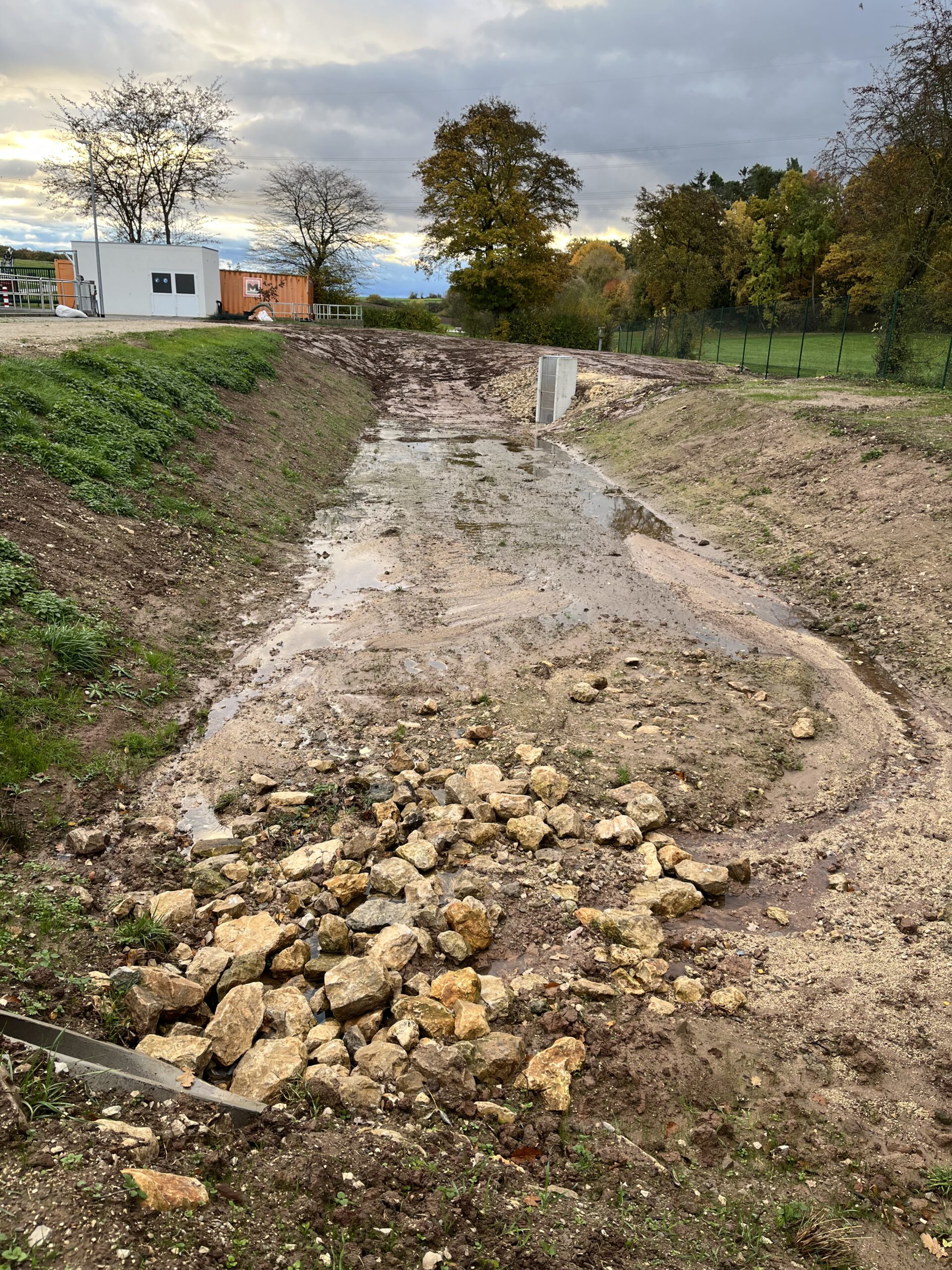 Bau: 2025, Besonderheit: Lamellentauchwände, Umbau eines bestehnden Schönungsteiches zum Regenrückhaltebecken